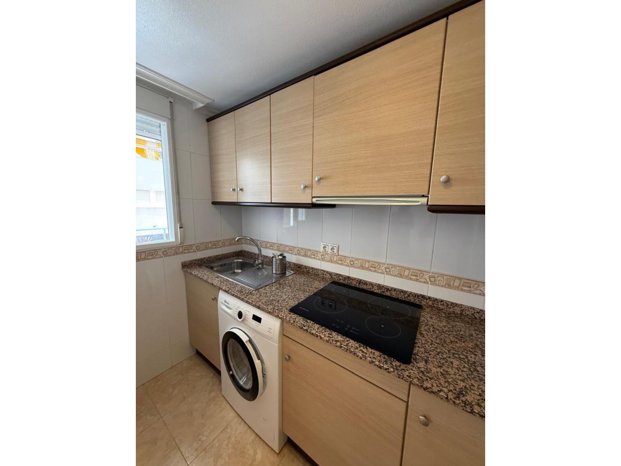 La cocina, totalmente independiente, está equipada con muebles altos y bajos y dispone de una ventana de cuerpo entero con salida alpatio interior que aporta luz y ventilación, creando un ambiente agradable para cocinar. El salón-comedor es amplio y acogedor, ideal para compartir momentos en familia o con amigos.