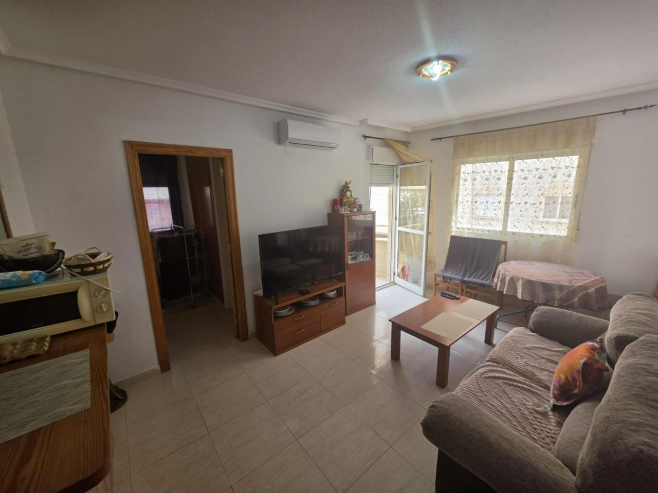 Este fantástico piso en venta se encuentra en el centro de Torrevieja, en una ubicación privilegiada. Con una superficie total de 85 m², esta vivienda en el primer piso te ofrece 3 habitaciones (1 individual y 2 dobles) y 2 baños para tu comodidad. Además, cuenta con aire acondicionado, armarios empotrados, calefacción eléctrica y está en buen estado de conservación. La distribución de este piso es ideal, con una cocina totalmente equipada, una agradable terraza y suelos de gres. No pierdas la oportunidad de vivir en este acogedor lugar con una orientación sureste que te garantiza mucha luminosidad. ¡Contáctanos para más información!.